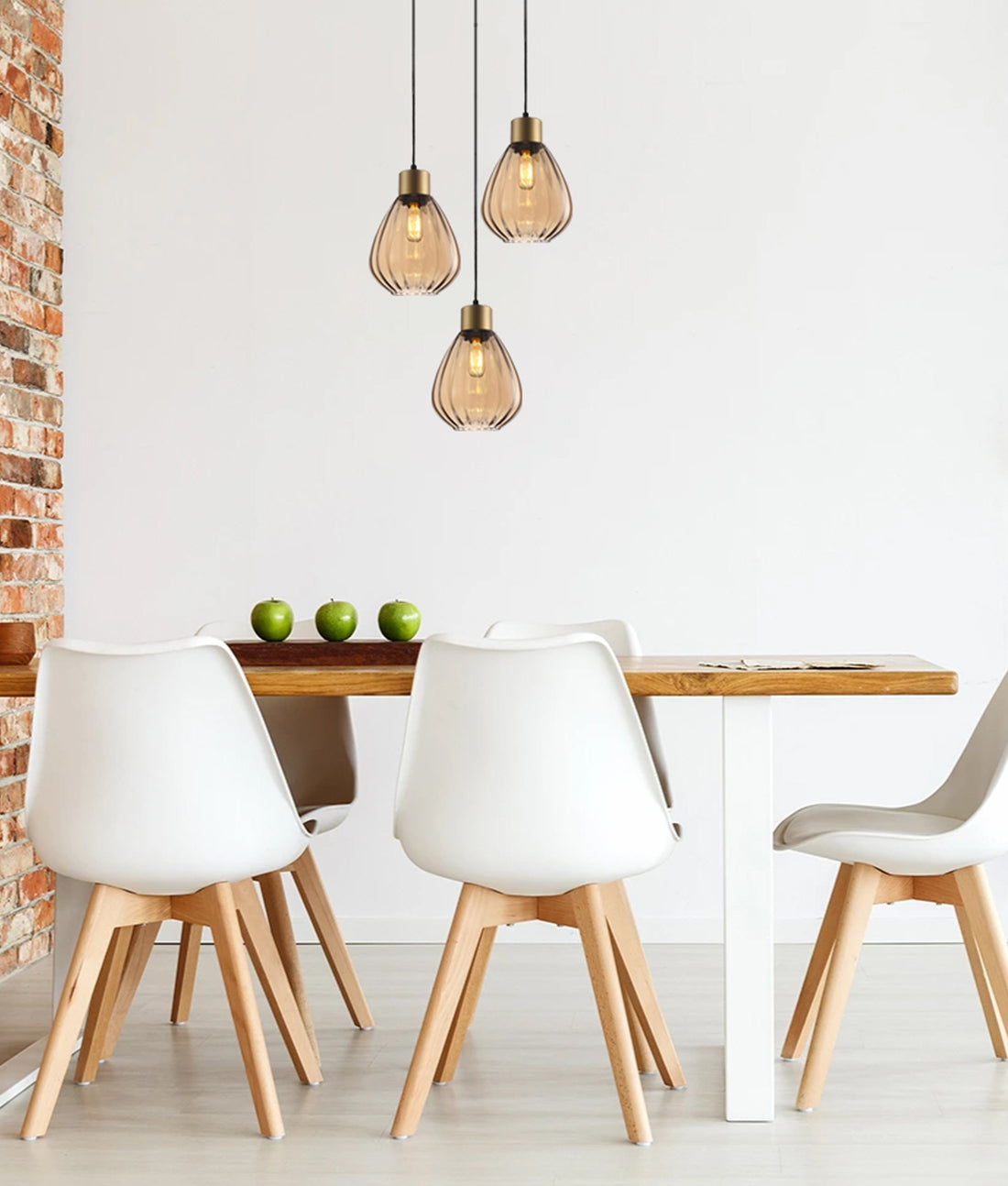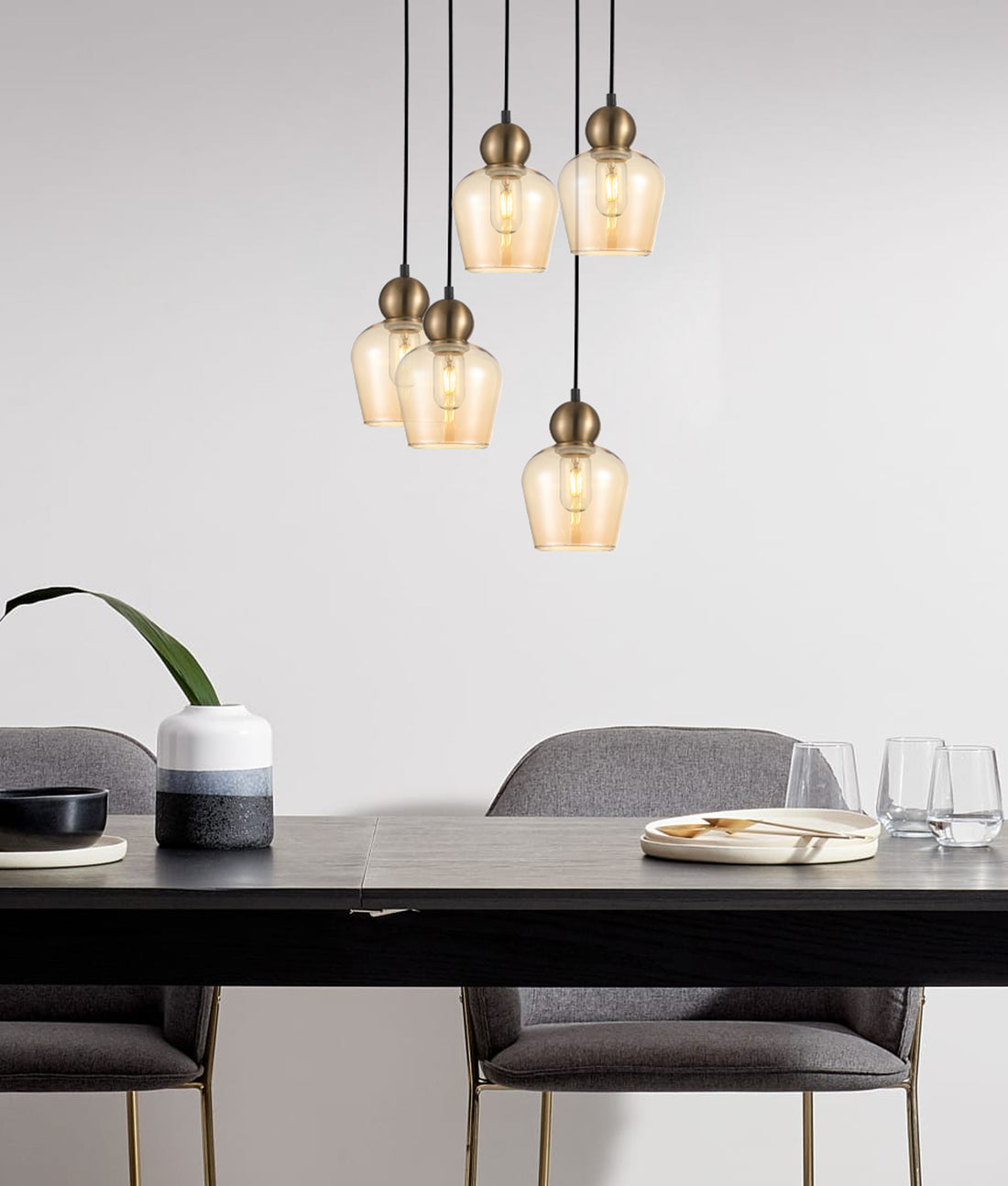 CHAMPAN1 Interior Bronze Amber Glass Ellipse Pendant Light- 3 lits Round