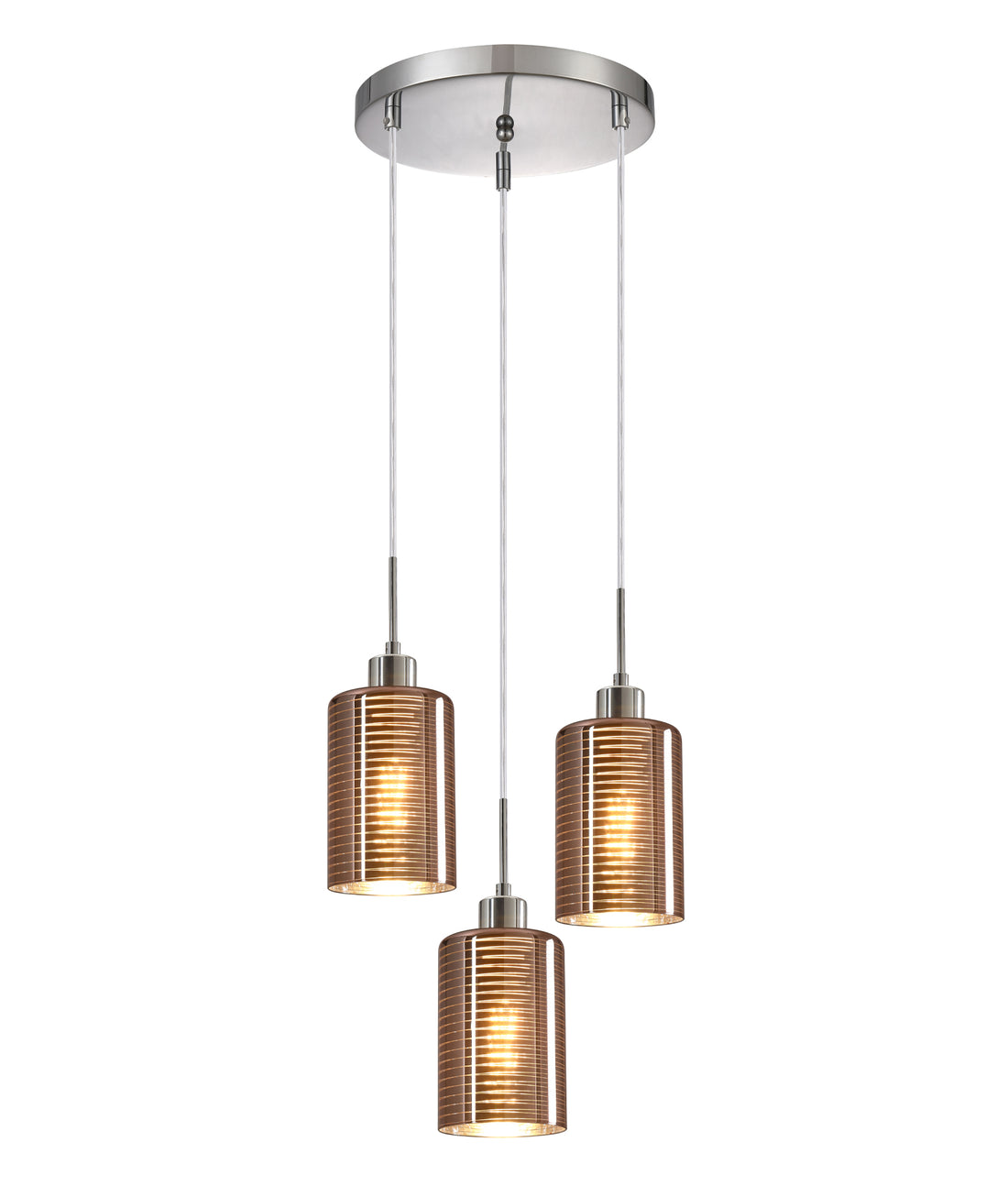 ESPEJO1 Interior Iron & Chrome Glass with Line Effect Oblong Pendant Light- 3 lits Round