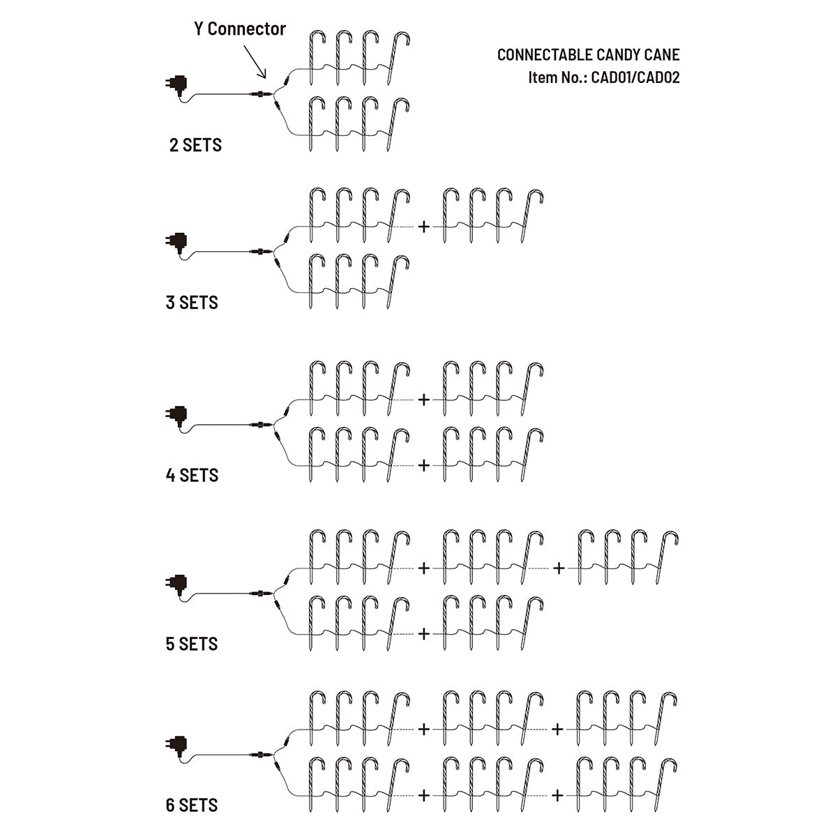 Set of 4 Connectable Candy Cane - 2 Colour Options