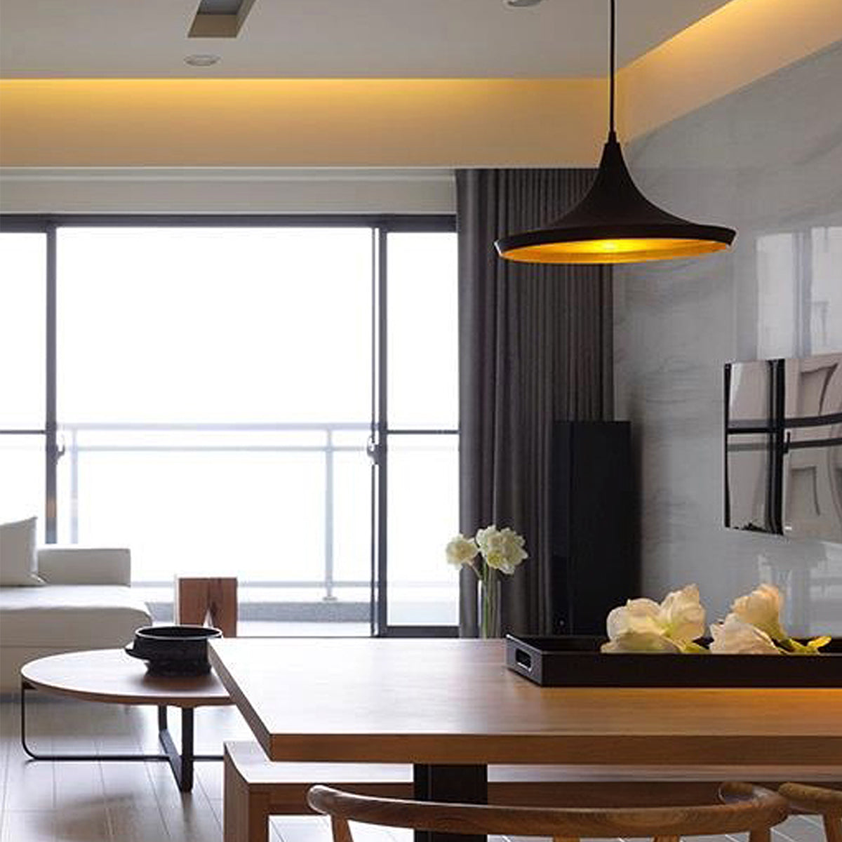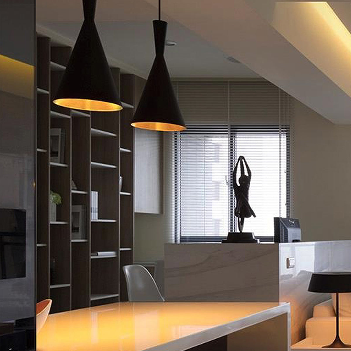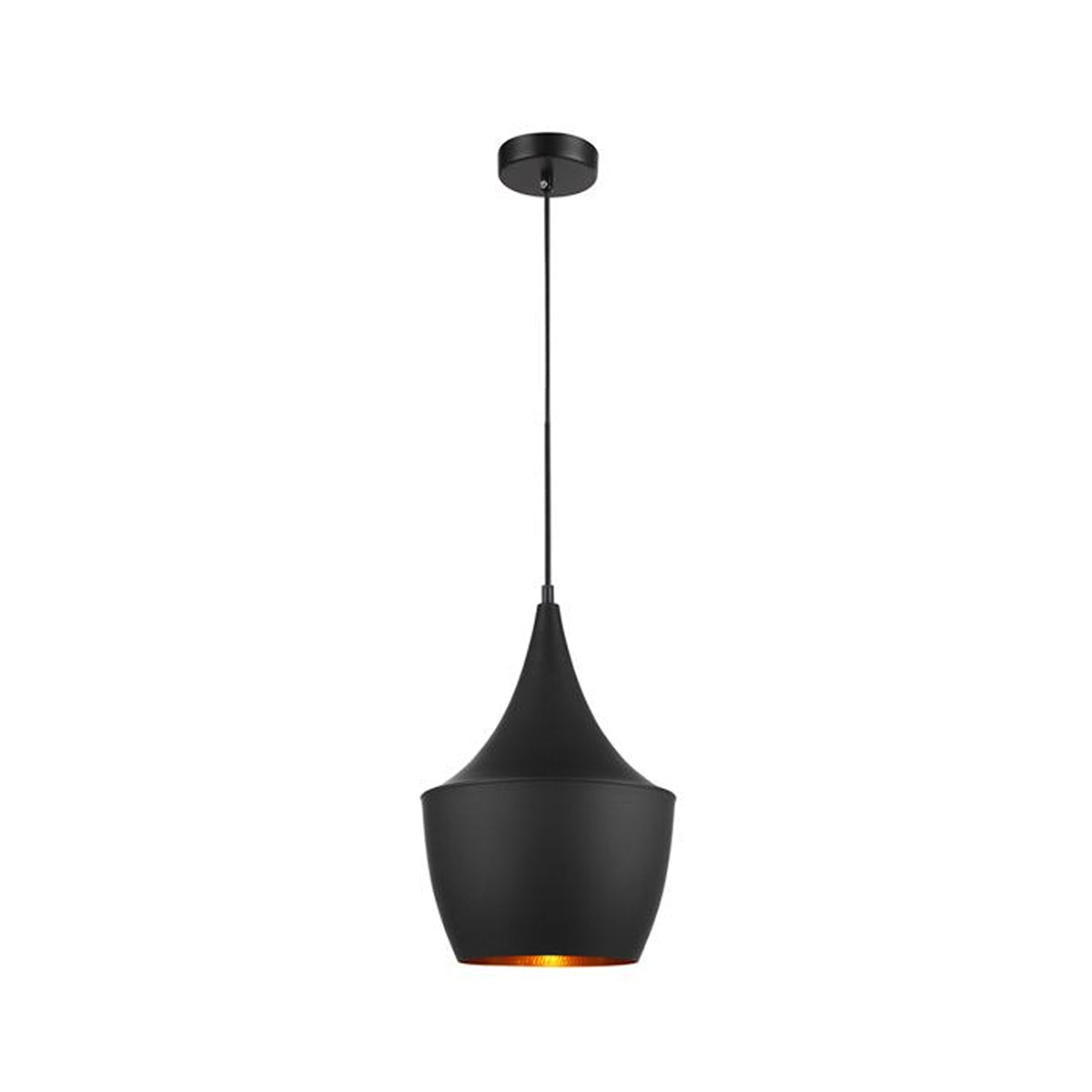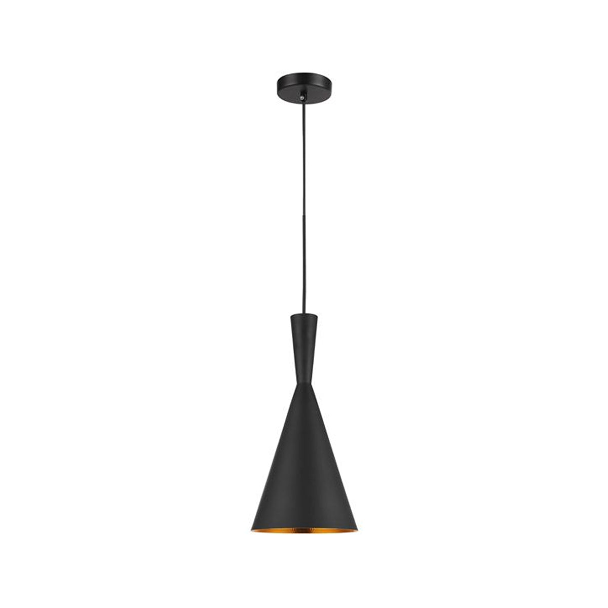 CAVIAR Black Mexican Hat / Angled Bell / Cone Shape Pendant Light with Gold Dimpled Internal