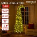 7.5ft Christmas Gremlin Tree Curved Top Red Bauble Built-In Green White LED Lights Control Base & Cord