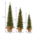 Set Of 3 Pre-Lit Christmas Trees Green Pine W/LED Lights, Hessian Base & Individual Plugs Varying Heights