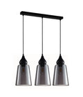 JEREZ2 Interior Black Smoke Glass Flat Top Ellipse Pendant Light- 3 lits Straight