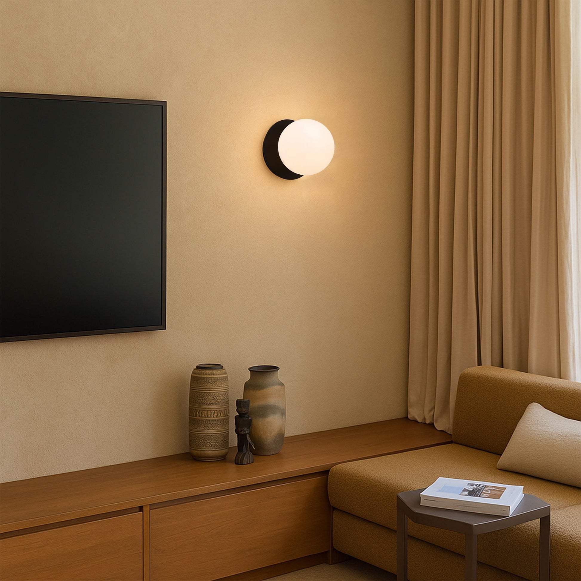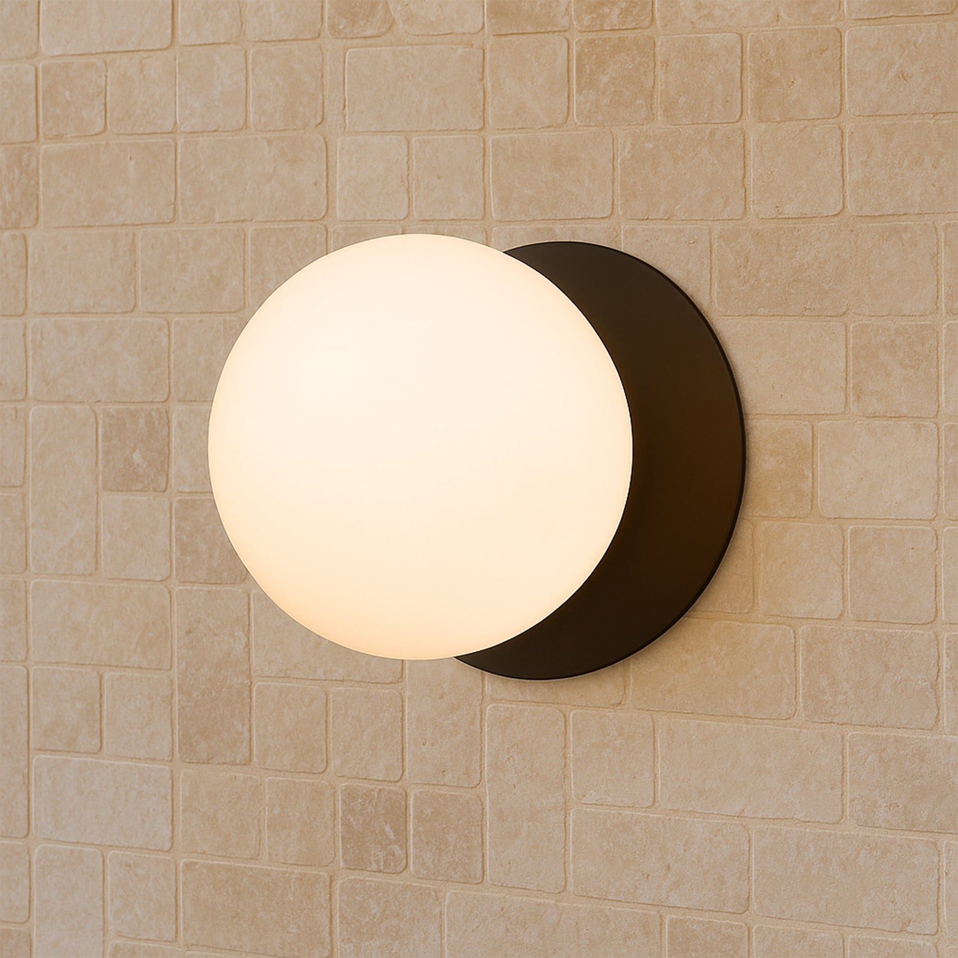 Odessa Opal Frosted Glass LED Wall Light with Black Base - Warm White/Small